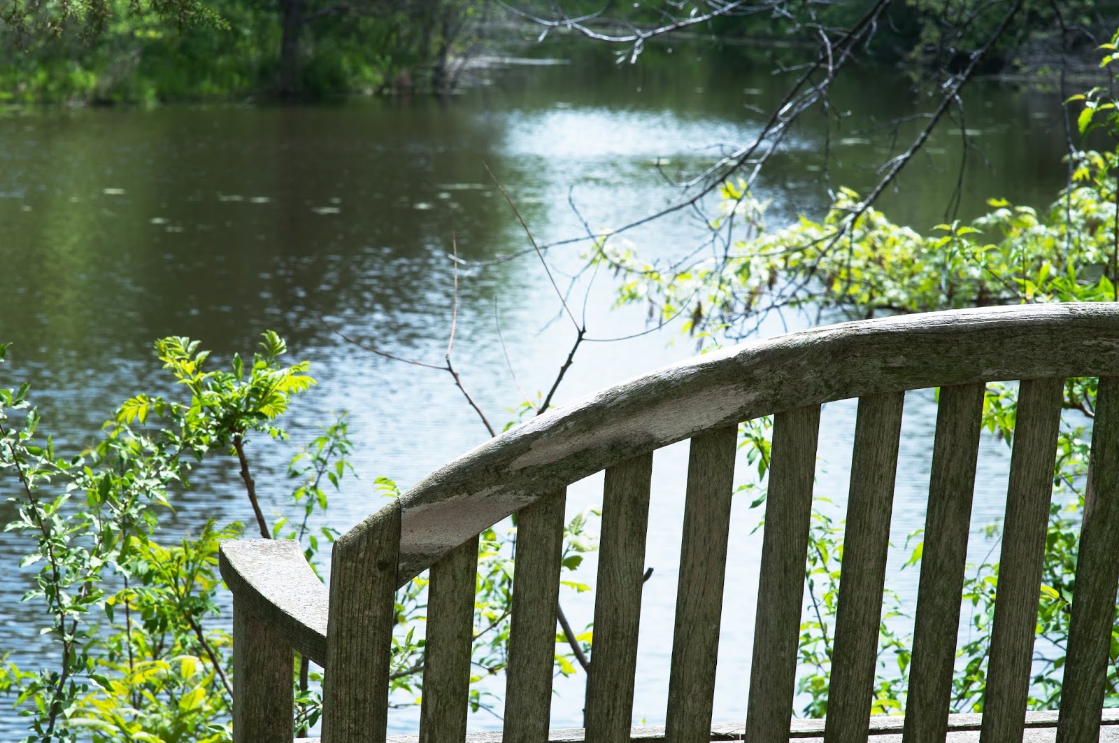 Bench on the walking trail overlooking one of two ponds on the ACT campus