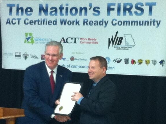 Gov Nixon presents official State of Missouri proclamation of Jasper County as the nation’s first Work Ready Community certified by ACT