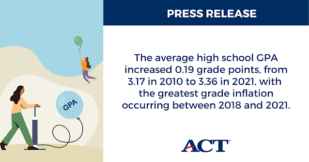 “Grade inflation is real, it is widespread, and it weakens the value of student transcripts as a single measure of what students know and are able to do,” said ACT CEO Janet Godwin. “The study shows that grade inflation is a persistent, systemic problem, common across classrooms, districts, and states.”