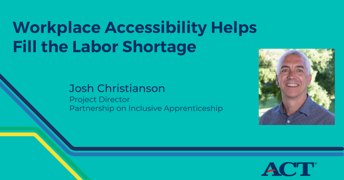 Josh Christianson, project director at the Partnership on Inclusive Apprenticeship, was at the ACT Workforce Summit last year where he discussed the importance of accessibility in today’s workplace. Employers who moved to remote work opportunities, or teleworking, during the pandemic demonstrated the capabilities and flexibility technology offers people with disabilities to work remotely on a regular basis. Christianson touches on this and on digital accessibility and why it’s important for employers to provide accessible platforms for employees, especially as our economy faces worker shortages.