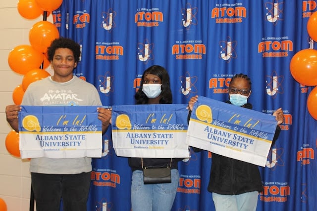 Sol C. Johnson High School students Cameron Montgomery, Allanah Hall, and Trinity Roberts received on-the-spot acceptances to Albany State University. Credit: Georgia Apply to College