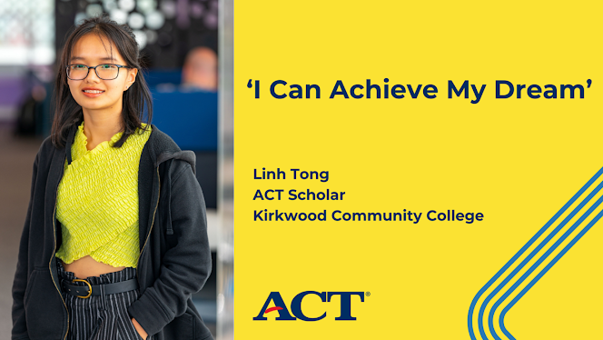To commemorate their journeys from application to graduation, ACT has invited these scholars to share their stories. Linh Tong is a student at Kirkwood Community College who is pursuing an associate of science degree and plans to graduate this spring.