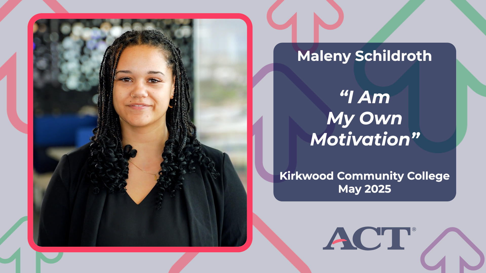 ACT established the ACT Scholars program to nurture the academic talent of graduate and community college students at the University of Iowa and Kirkwood Community College, respectively. These institutions share ACT’s commitment to helping all learners achieve their college and career goals. Each ACT Scholar’s story reflects resilience, passion, and a vision for the future.