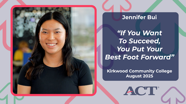 For Jennifer Bui, college represents more than just a new chapter; it's a chance to grow, connect, and confidently pursue her goals. A student at Kirkwood Community College, Jennifer is grateful for the support of her parents, teachers, and the welcoming Kirkwood community. She's learning to navigate change, build independence, and make the most of her college experience — both in and out of the classroom.
