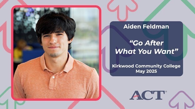 For ACT Scholar Aiden Feldman, college is a chance to follow his dreams and honor the encouragement he’s received from his biggest supporter — his mom. At Kirkwood Community College, he’s found a strong sense of belonging through supportive peers and welcoming faculty at the Linn Regional Center. With help from the ACT Scholar program, Aiden is embracing every opportunity college has to offer without the weight of financial stress.