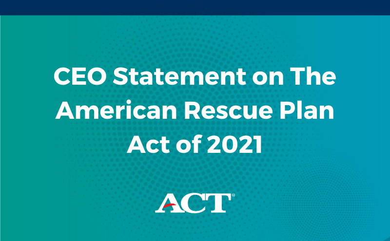 11 Mar 2021 CEO Statement on The American Rescue Plan Act of 2021 Workforce and Work Ready College Readiness